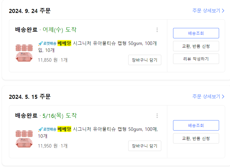 로켓배송은 내일 가져다 주는게 확실하니까 계속 쓰게 되는 것 같다..